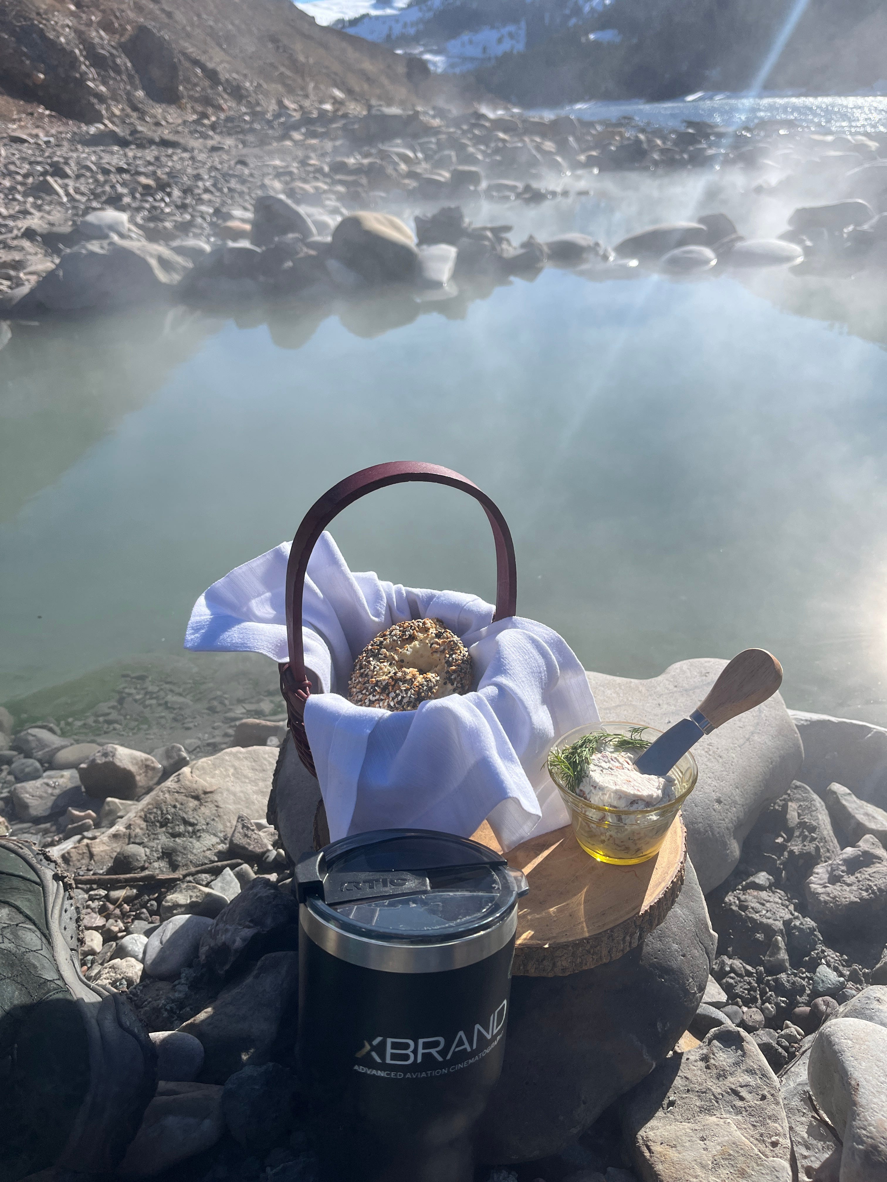 But across the river from those tame hot springs, there are wild hot springs that you can hike down to and enjoy for free. There is no oversight, no changing area, and a steep and muddy slope to maneuver, but the payoff is worth it.