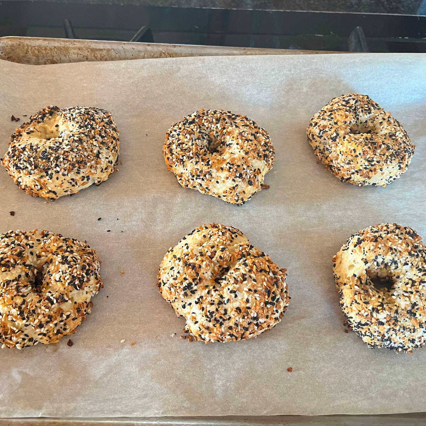 Toppings of your choice (I used almost an entire jar of Trader Joe’s Everything Bagel seasoning)