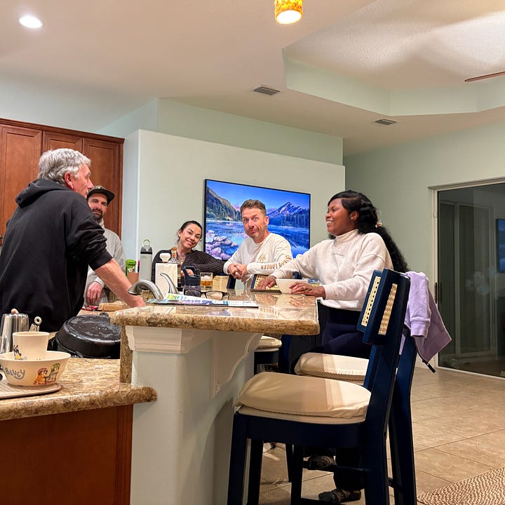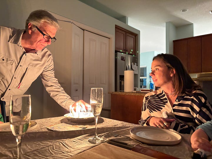 We were getting ready for Rose’s big birthday, and Kirk and I made a Key Lime Pie with real Key limes that we found at Publix. We toasted Mama with some Prosecco before she and Stephen went out for a night on the town and slurped down some Sebastian Inlet oysters at a happy hour. Too cold to be out in the Tiki Bar.