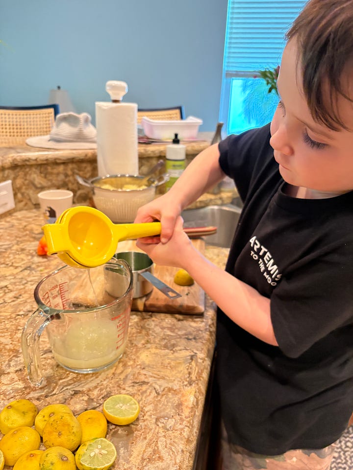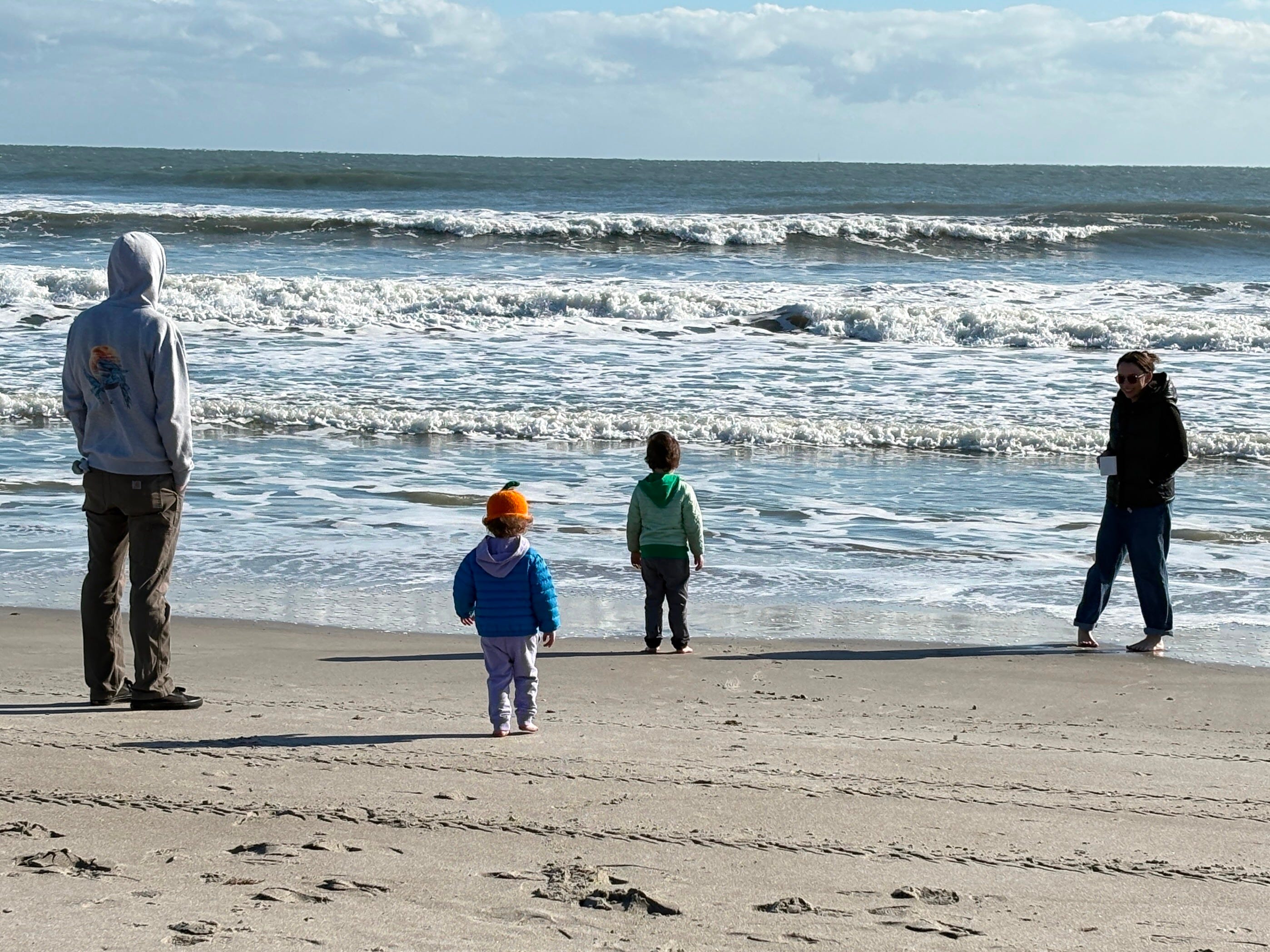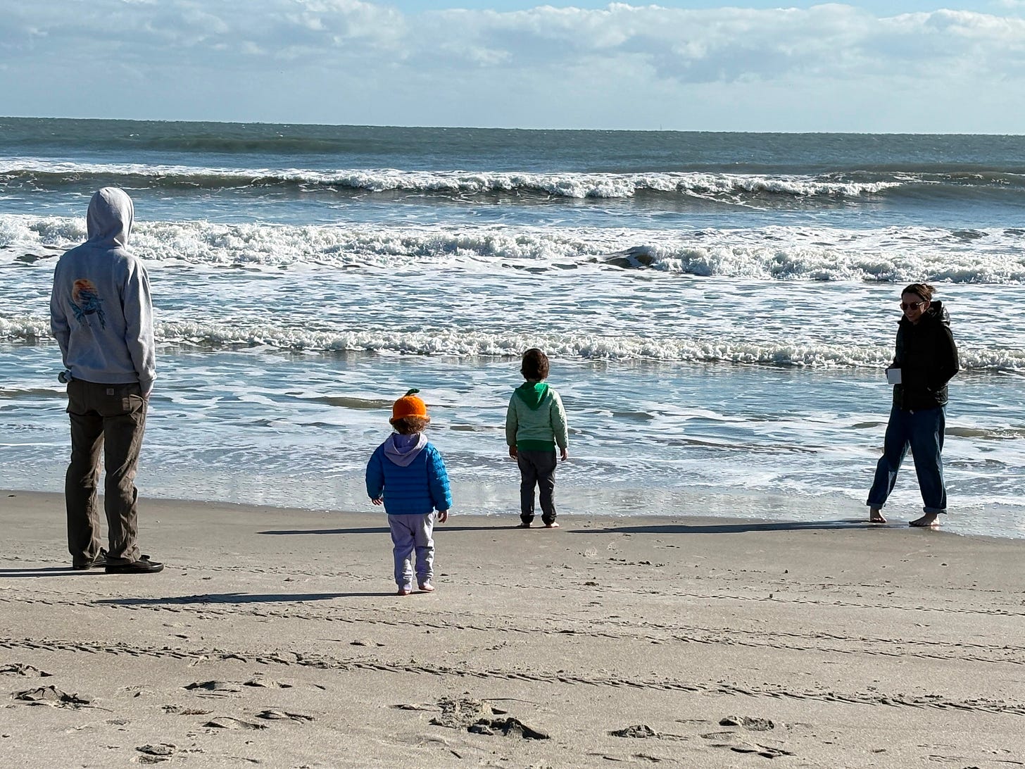 What we have found with our young visitors is that there is always a mealtime on the horizon. When they first get up, someone makes them First Breakfast, which is an omelette, pancakes, or a bagel with lox. That holds them over for about an hour until Second Breakfast. After that, there is Snack, which precedes Lunch. Sometimes there is a Second Lunch, but not usually. They are often out and about, busy and engaged. Any beach outing requires multiple snacks and drinks, and Kirk made the happy discovery that the beach wagon has a built-in table and the seagulls steer clear of it.