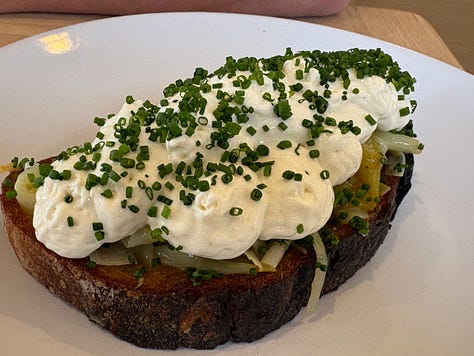 And then I was gone. Joe drove me to the airport, and I didn’t have to eat again until Chicago, where I encountered a very nice small plate of griddled asparagus topped with Parmesan accompanied by a cold glass of chardonnay—but not a true French one.