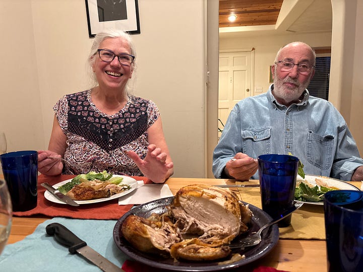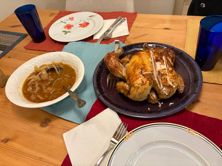 Our good buddy Ed picked me up at DIA, and he and his wife, Janet, provided safe haven for a night. Is there anything that smells better than a house warm and redolent with the aroma of a roasting chicken? Janet had nestled the bird on a bed of onions, no less. Ed had prepped his Caesar Salad, perfected when he made it tableside as a waiter at the Victorian Manor in Lemont. Our dinner was on the table in a flash, accompanied by an Alsatian dry Riesling, a style they learned to enjoy on their recent European river cruise.