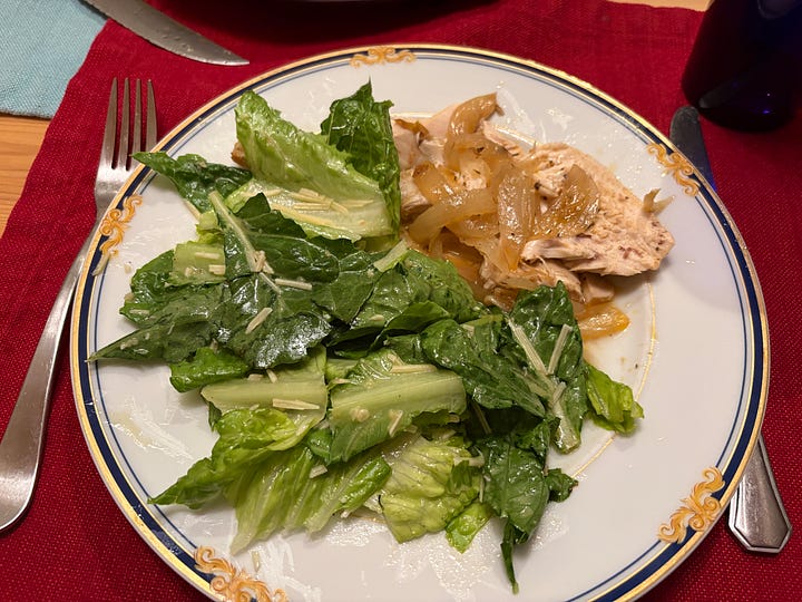 In the morning, Janet and I took a walk along Cherry Creek while Ed drove off for his Wednesday morning volunteer session at Project Angel Heart. He is not making Caesar Salad there; rather, he is making “medically tailored” meals for Coloradans with severe illness and no access to nutritious food.