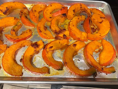 Kuri squash is very hard-skinned. Use a sharp knife to cut it in half, scoop out the seeds, and microwave the halves for about 6 minutes, flipping once after 3 minutes. The squash will be much easier to slice into wedges then. Put the wedges into a large bowl and drizzle about a tablespoon of olive oil on them, and toss well. Warm 2 tablespoons of unsalted butter and two tablespoons of white miso in the microwave on very low power so you can mash them together, and then massage the butter/miso mixture onto the squash wedges. Place on a sheet lined with parchment or a sprayed cookie sheet, and roast at 400º for about 30 minutes, until the squash is tender. The skin is edible and delicious.