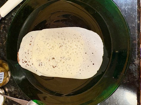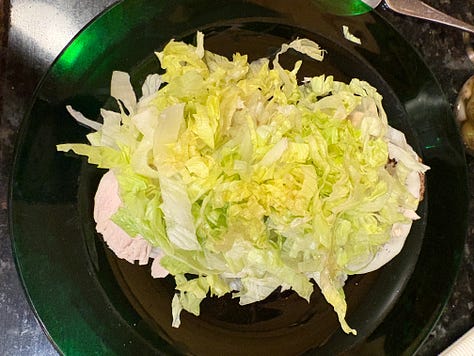 Thanksgiving leftovers are still on the menu at our house, since we cooked a 22-pound turkey for six and a half people. We have done them in sequence—straight up, just like Thanksgiving dinner again: then hot turkey sandwiches, a vat of turkey-and-vegetable soup with noodles, and Turkey Pot Pie. Last night, aiming for a different flavor profile, I remembered our former neighbor Chuck Fisher’s Marshall Fields Special Turkey Sandwich, which Chuck and his wife Jenny made for us one year. It was a welcome change.