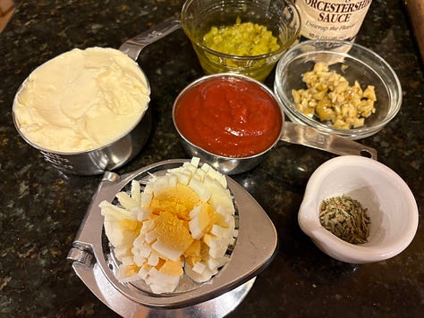 Nowadays, Black Friday has morphed into a week-long call to arms for shoppers. But much of that shopping is done online, without the immersive experience. Holiday shopping was hands-on in those days. And all the shopping and bargain-hunting worked up an appetite. At Marshall Fields, their signature sandwich was what Chuck Fisher recalls from his childhood, and he continues to celebrate the tradition. And has gotten me hooked on it as well. We can make the salad sandwich on our own and reminisce—as we shop with our fingers on a keyboard or call an old friend for a holiday catch-up.