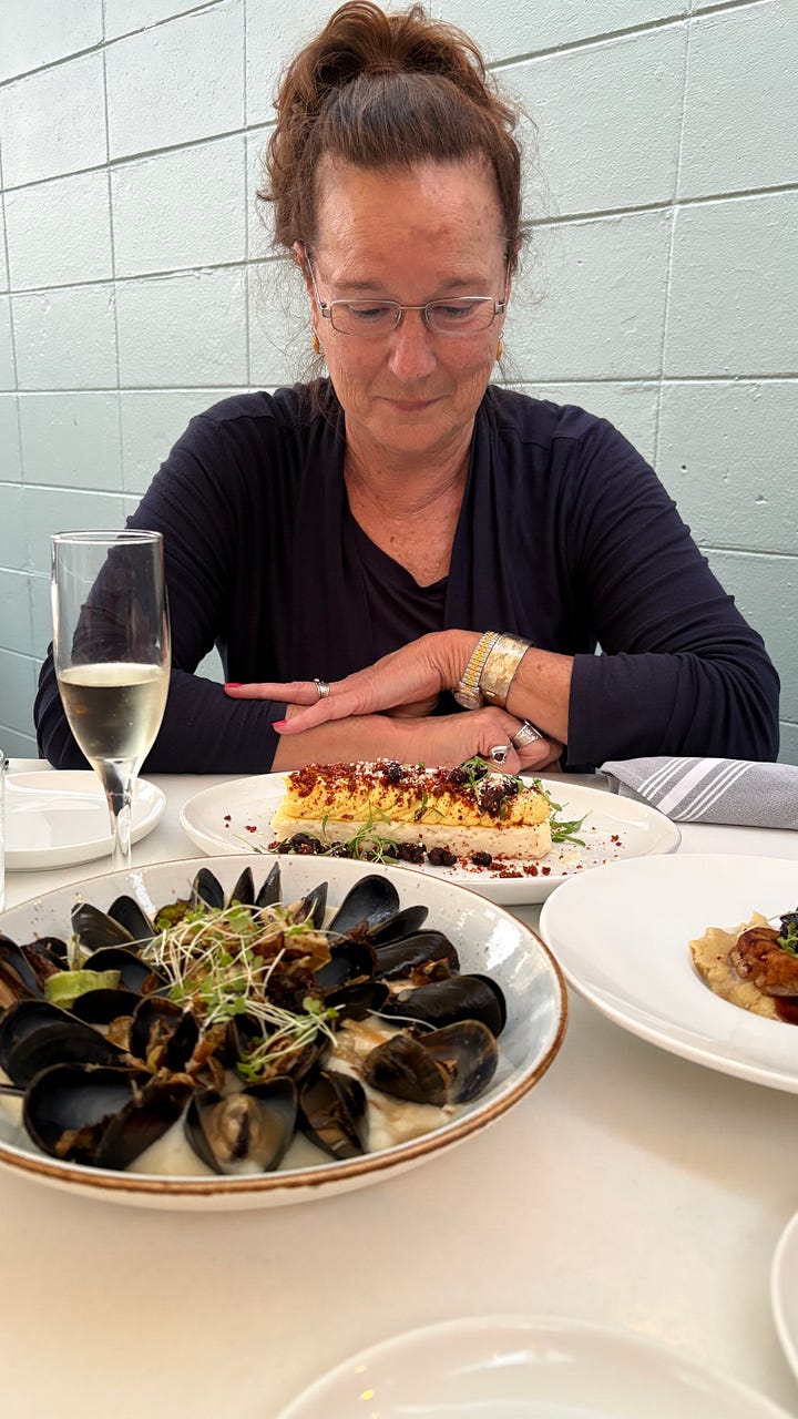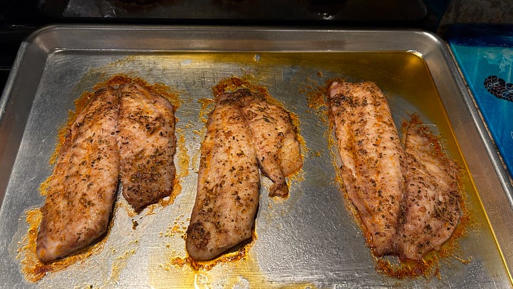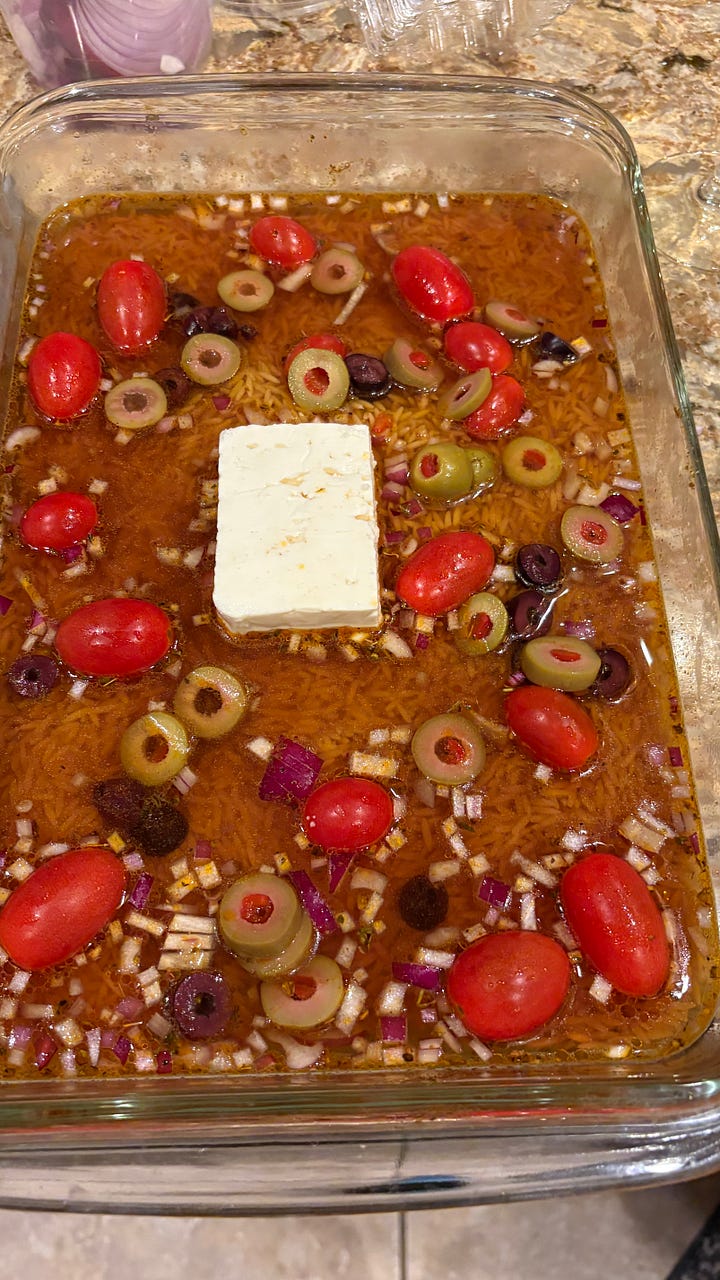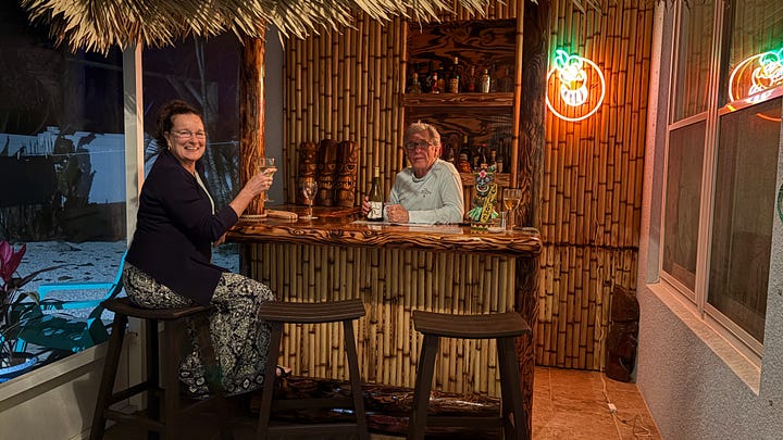 The next day, we explored the town, visiting Retro Reef, which is a treasure trove of 60s and 70s memorabilia. We went to Seafood Atlantic to pick up sheepshead for dinner and served it alongside baked orzo with feta, spinach, and cherry tomatoes. While the orzo baked, we enjoyed a glass of wine in the tiki bar before dinner.