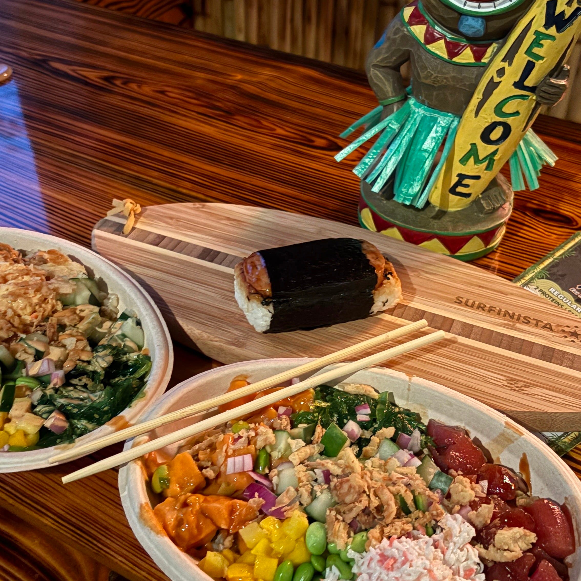 We stopped at Poke Fin in Cocoa Beach to pick up dinner. The little shop is next to the Ron Jon’s complex, and we ordered a couple of bowls to share as well as one Hawaiian Spam Musubi-- sushi rice, seaweed, and a slice of spam. Interesting, but I think it is an acquired taste.