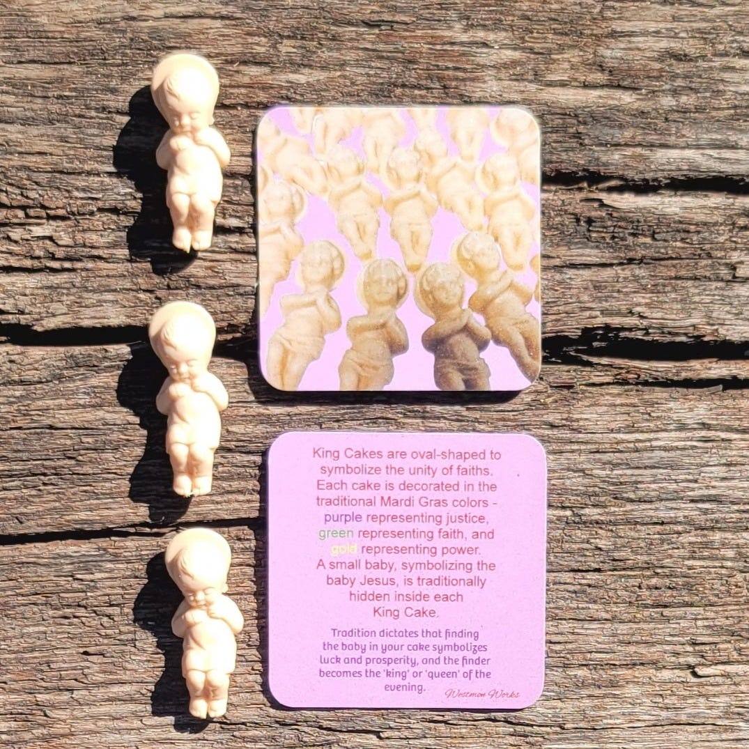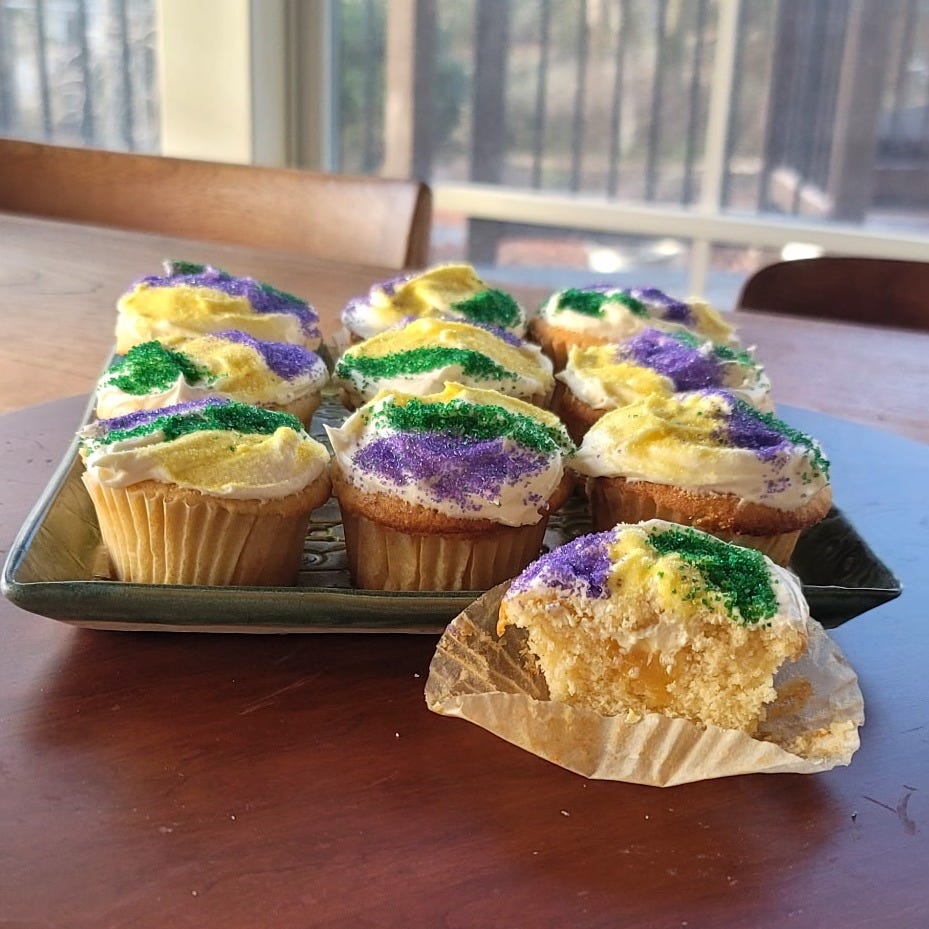 My sister Mary in California, Maryland made some King Cake cupcakes that interested me in the theme, though I need no encouragement to cook the foods of Louisiana—I love them all. But Mary’s photo of the cupcakes for her book club meeting got my juices flowing, and I will try her recipe—though it is too late to order the babies to hide in the cake. I can substitute gummy bears.