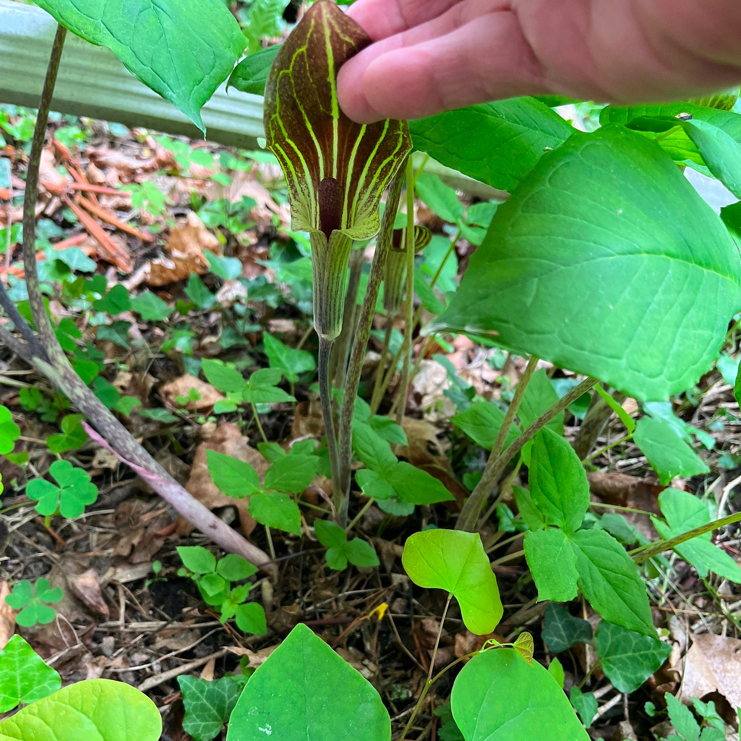 (And he has some cousins near our front door—purple ones. It’s a Jack-in-the-Pulpit village!)
