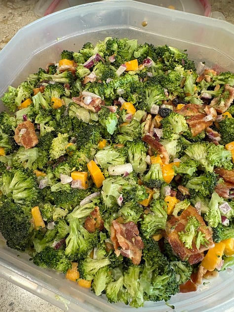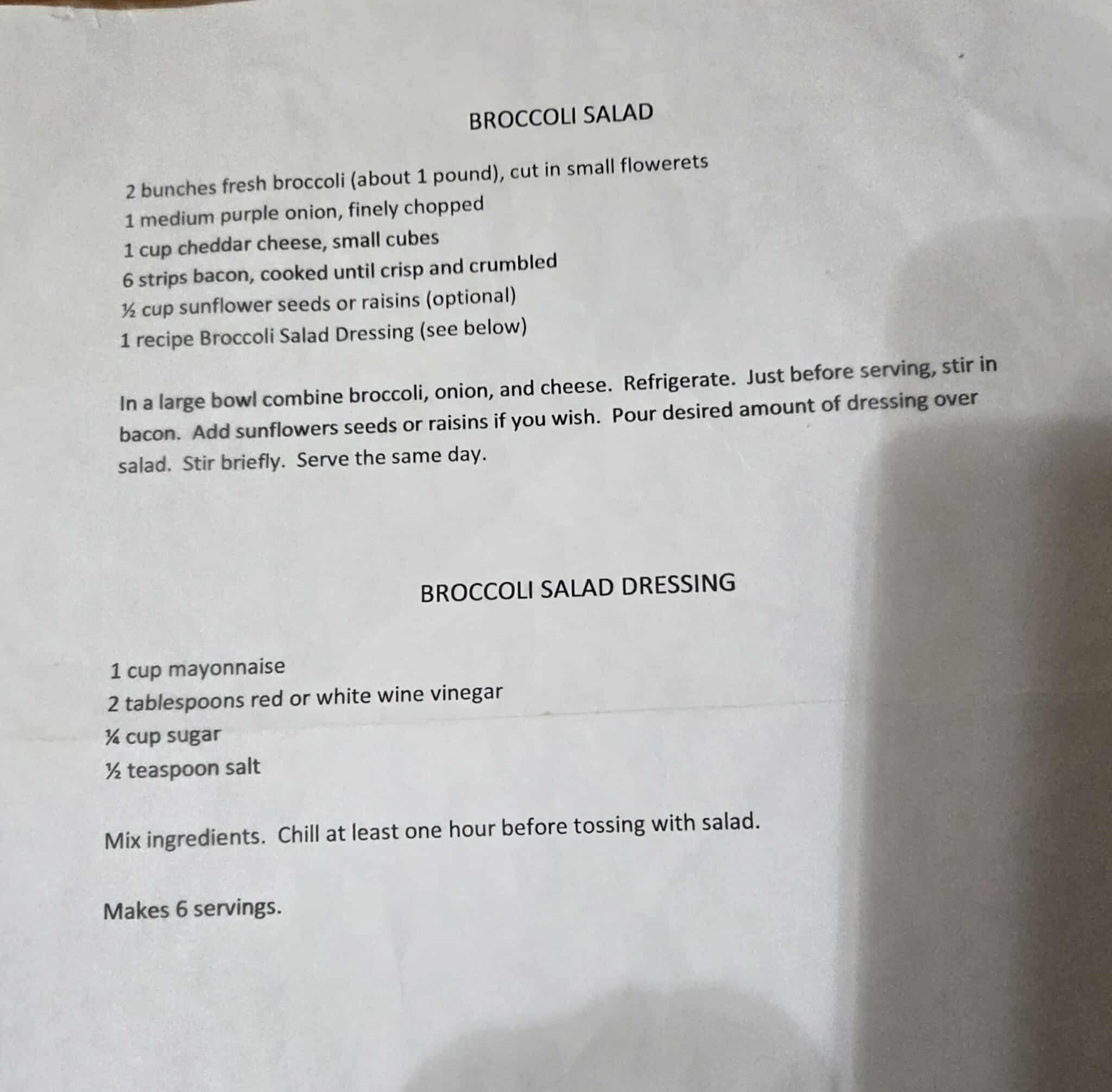 This broccoli salad made by Jackie Shinoski, Joe Shinoski’s (the son of Joe Shinoski, Sr,) wife, was popular.