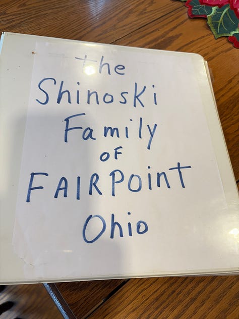 After we all ate, and ate, and ate, we broke into small groups to play cards and other games. Cousin Barb and Cousin Sandy brought photo albums filled with vintage photos of our forebears. Sandy also had pictures of Anna Shinoski’s family, those who remained in Poland, and she said how very gracious they were to her when she visited last year. Someone turned on the music, and polkas started playing, prompting spontaneous clapping and dancing.