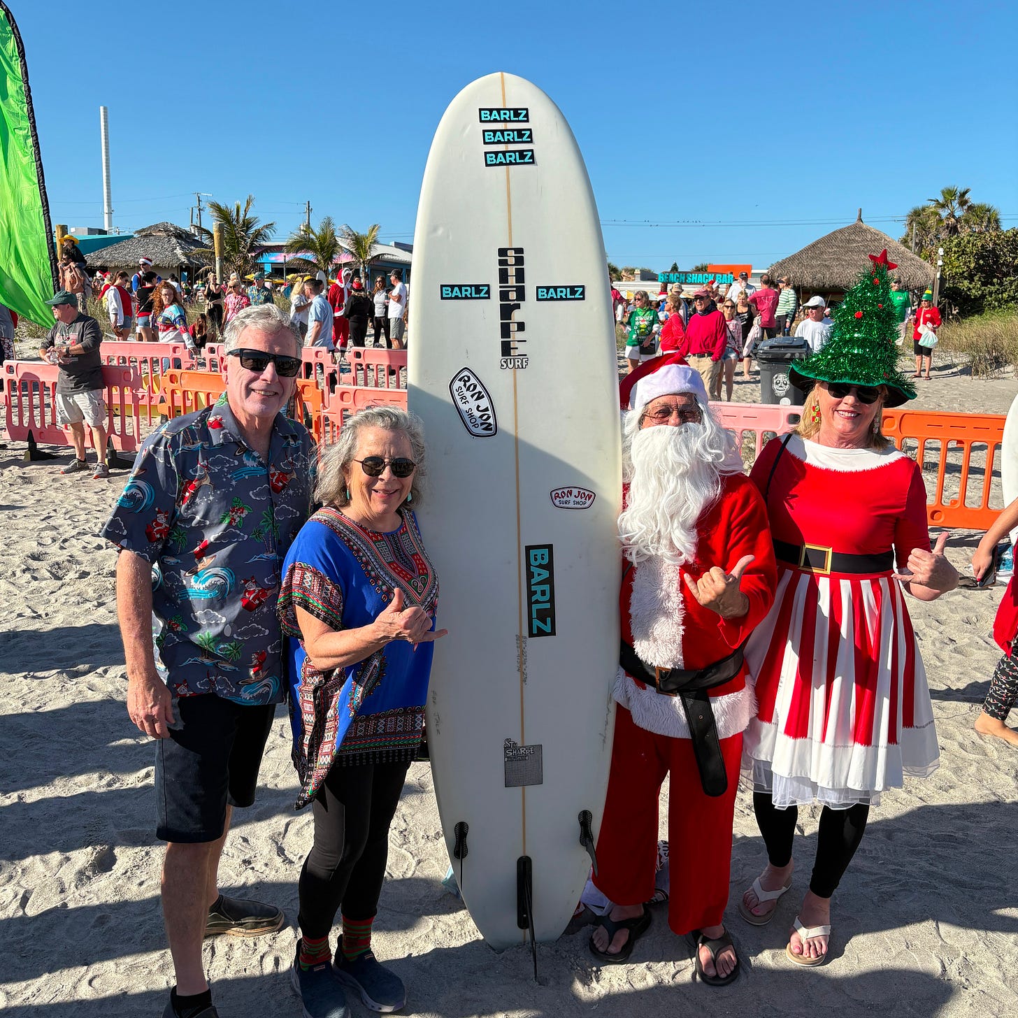 -The next morning was Christmas Eve, and there was a Surfing Santas event at Cocoa Beach that started at 7:30. Our server, Sarah, at The Fat Snook recommended we ride our bikes as traffic is a force on the narrow island. That was good advice.