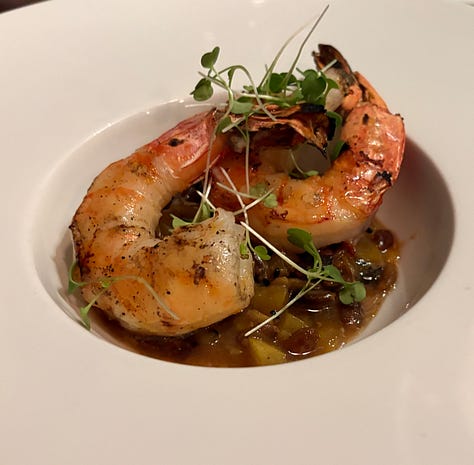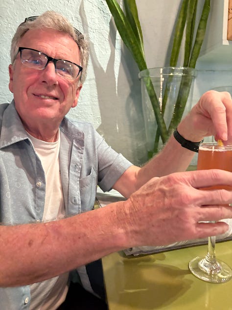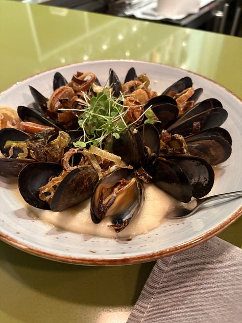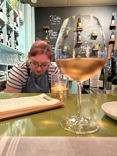 Meanwhile, John was thundering down I-95 and arrived late that afternoon. We ducked over to The Fat Snook, a restaurant a mile away from the house that had a very robust happy hour. We sat at the bar for a drink and shared three half-priced appetizers that made us realize we would need to come back again and again.--sized glass of rosé
