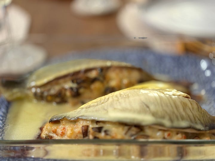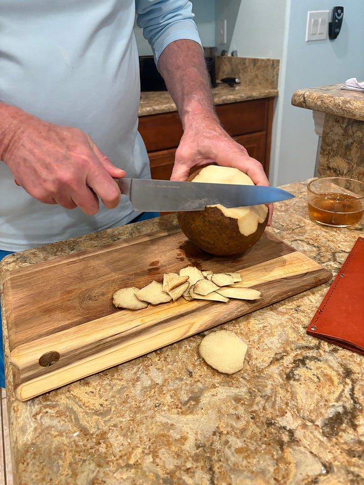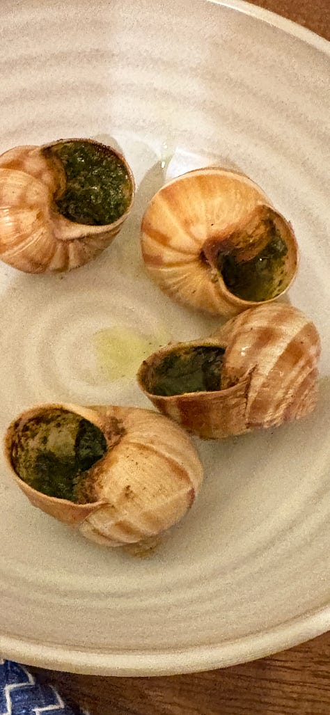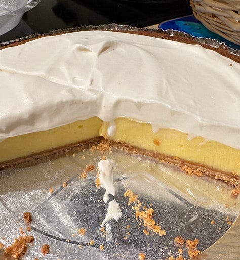 On Saturday, we found another seafood market in Sebastian when we went down to the coast to see what we could see. They were sold out of their local Sebastian oysters, but we purchased tilefish, local shrimp, local mullet roe, and non-local escargot—because John cannot resist that French delicacy when he sees it. We had another quick dinner with roasted squash and baked potatoes—and topped it off with Key Lime Pie.